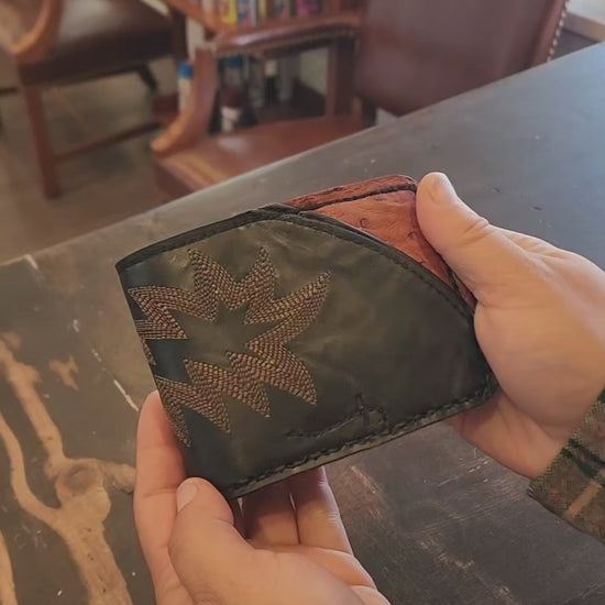 This featured piece was made from a young man’s late grandfather’s ostrich Justin boots, now reimagined as a timeless keepsake that holds both cards and sentiment.