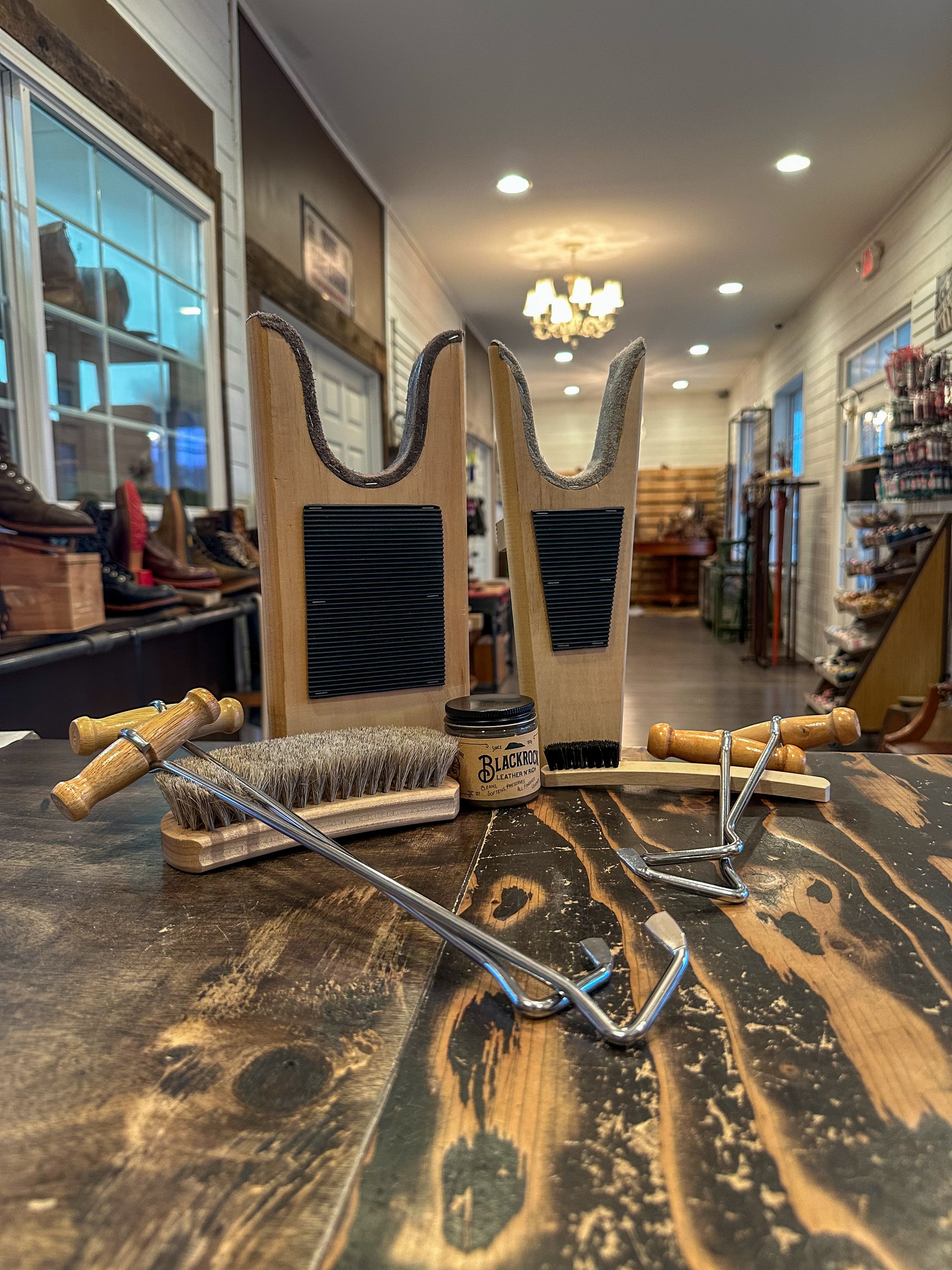 The Ultimate Boot Starter Kit is all you need to properly maintain your leather boots. This kit contains our Black Rock Leather Cleaner & Conditioner, our Toothbrush Horsehair Brush, our medium buffing brush, our boot Jack, and boot hooks. All of which are designed to restore the original shine and condition of your leather boots while maintaining them to last a long time. Perfect for any level of boot enthusiast.